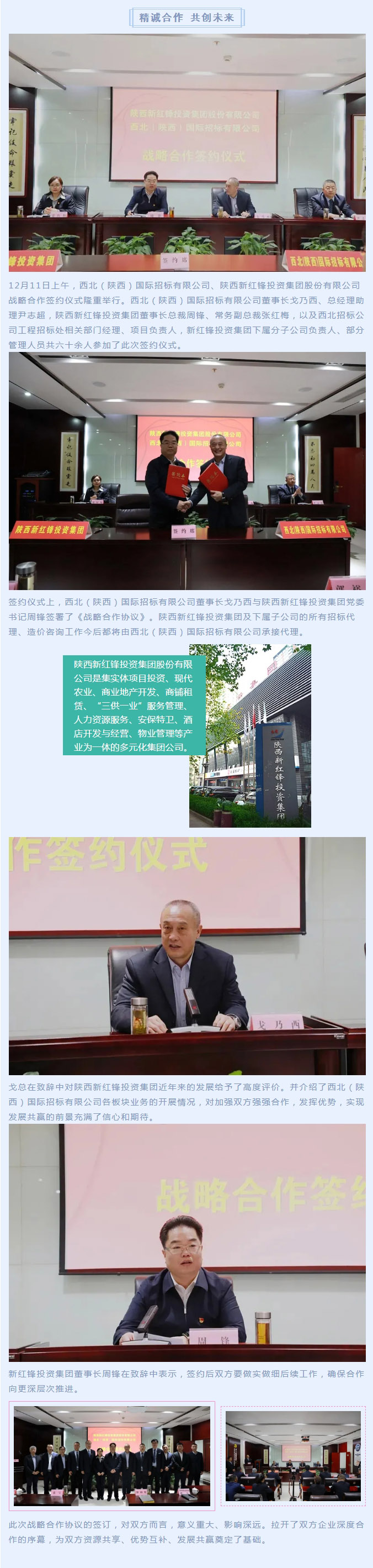 精誠合作 共創(chuàng)未來——西北(陜西)國際招標(biāo)有限公司與陜西新紅鋒投資集團(tuán)股份有限公司戰(zhàn)略合作簽約儀式隆重舉行