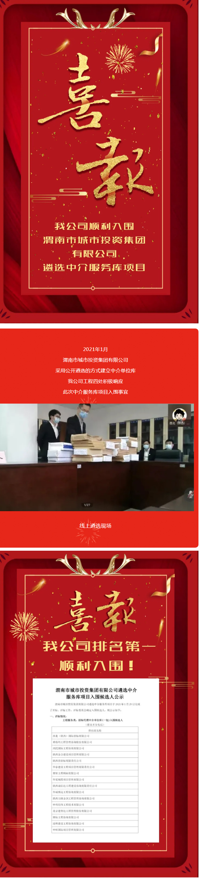 我公司順利入圍渭南市城市投資集團(tuán)有限公司遴選中介服務(wù)庫(kù)項(xiàng)目