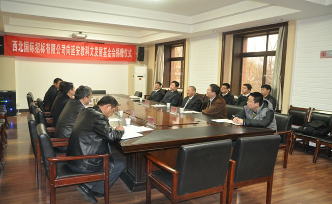 張金鎖校長介紹了延安大學(xué)相關(guān)歷史及現(xiàn)狀,并對西北國際招標(biāo)公司對延安科教文發(fā)展給予的支持表示衷心的感謝。戈總表示,為促進(jìn)延安教科文發(fā)展基金會(huì)各項(xiàng)事業(yè)的順利實(shí)施,以及從戰(zhàn)略高度和長遠(yuǎn)發(fā)展需要出發(fā),我們希望通過這次合作建立多層次、高水平的校企合作關(guān)系,達(dá)到優(yōu)勢互補(bǔ)、共同發(fā)展的目的!