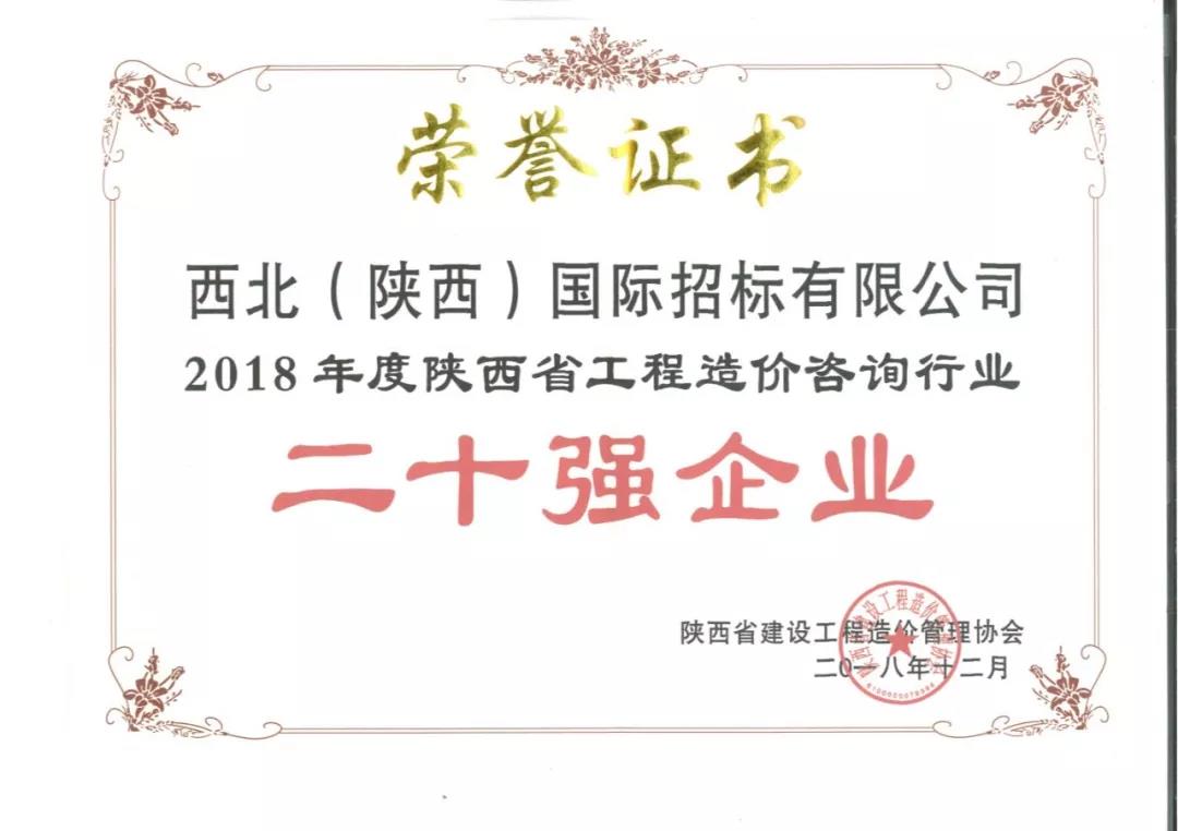 2018年11月30日,陜西省建設(shè)工程造價管理協(xié)會發(fā)布陜價協(xié)發(fā)〔2018〕31號文件,發(fā)布2018年度陜西省工程造價咨詢20強企業(yè)名單,西北(陜西)國際招標有限公司再次入圍,榮獲“第七名”。