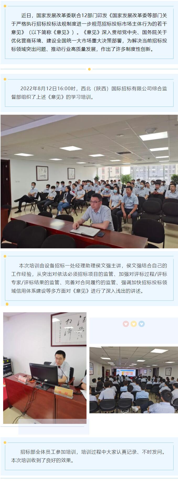綜合監(jiān)督部組織招標部全體員工學習《國家發(fā)展改革委等部門關于嚴格執(zhí)行招標投標法規(guī)制度進一步規(guī)范招標投標市場主體行為的若干意見》