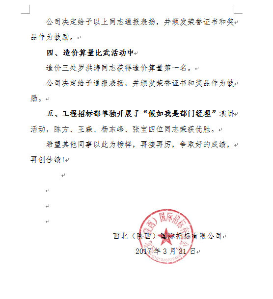 2017年度質(zhì)量月活動,公司集中開展了:“ISO9001新版宣貫”、“政府采購相關(guān)政策和法規(guī)的宣講”、“審計工作的培訓”、“新員工入職系列培訓”、“造價制度宣貫”;“政府采購政策考試”、“案例分析”、“造價算量比武”、 “模擬開標技術(shù)比武”; “假如我是部門經(jīng)理”、“踐行公司企業(yè)文化一年來體會、心得演講”等一系列活動。