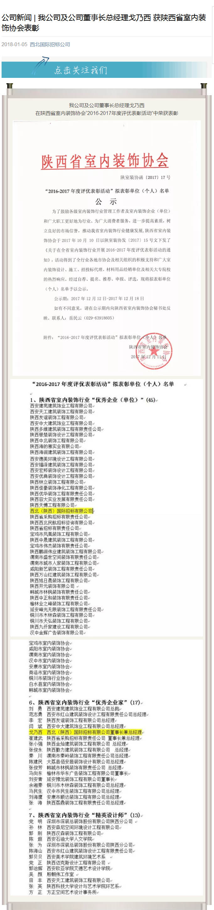 我公司及公司董事長總經(jīng)理戈乃西 獲陜西省室內(nèi)裝飾協(xié)會表彰