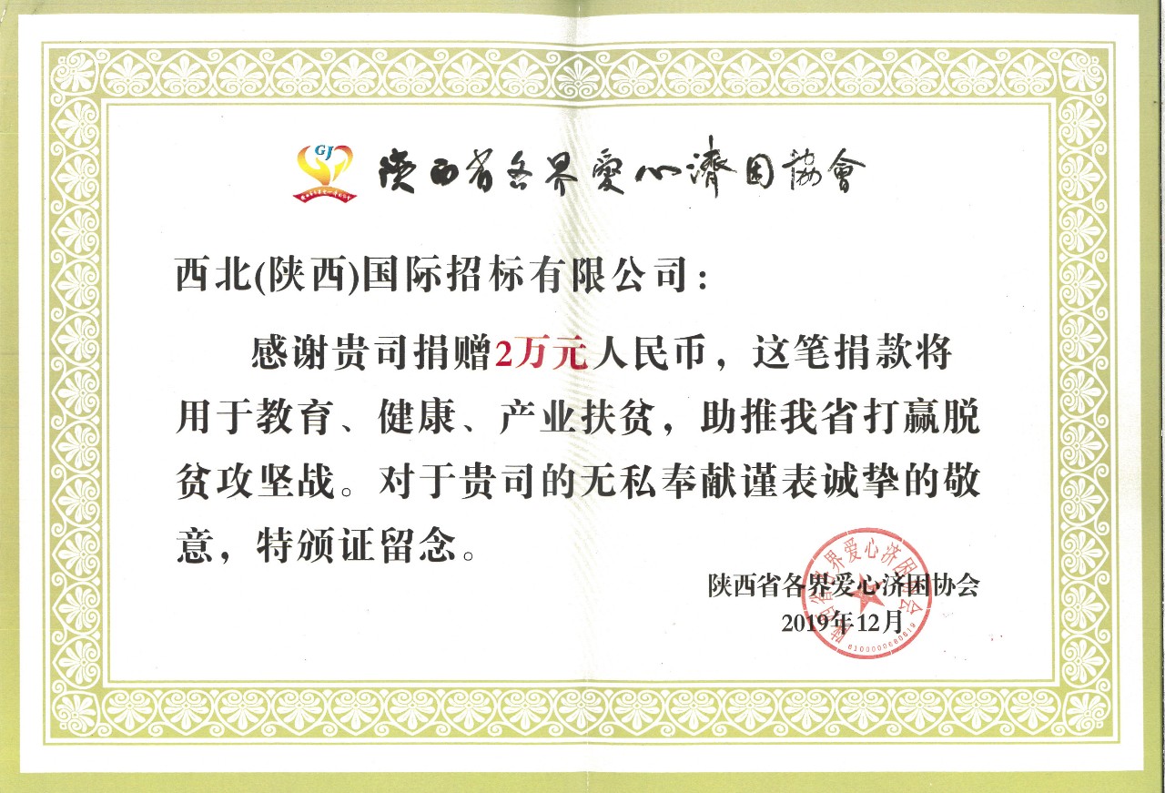 我公司向“陜西省各界愛(ài)心濟(jì)困協(xié)會(huì)”捐款2萬(wàn)元