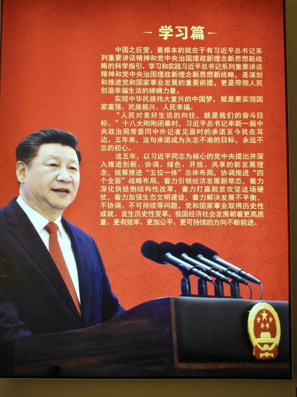 本次展覽分為學(xué)習(xí)篇和追夢篇。圍繞學(xué)習(xí)貫徹習(xí)近平總書記系列重要講話精神和治國理政新理念新思路新戰(zhàn)略,全面展示十八大以來黨中央統(tǒng)籌推進“五位一體”總體布局和協(xié)調(diào)推進“四個全面”戰(zhàn)略布局的生動實踐,黨和國家事業(yè)發(fā)展的輝煌成就;集中展示我省全面深入貫徹習(xí)近平總書記系列重要講話特別是來陜視察重要講話精神,落實“五個扎實”,奮力追趕超越的顯著成效和未來五年發(fā)展的任務(wù)舉措、目標(biāo)藍圖。