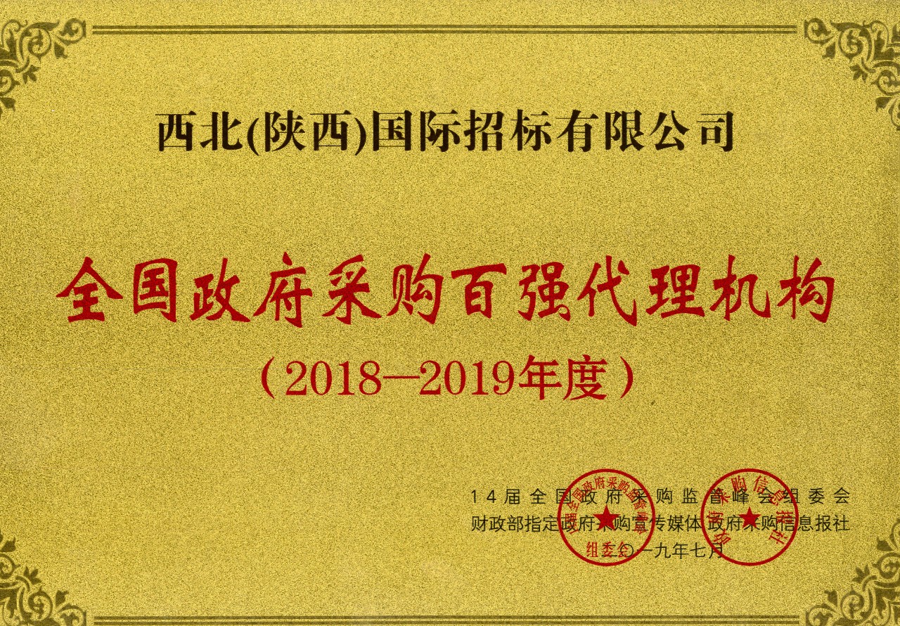 熱烈祝賀西北(陜西)國際招標(biāo)有限公司榮獲“全國政府采購百強代理機構(gòu)”稱號