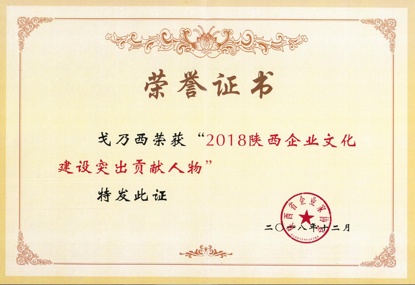 熱烈祝賀我公司總經(jīng)理戈總獲2018陜西企業(yè)文化建設(shè)突出貢獻(xiàn)人物獎(jiǎng)