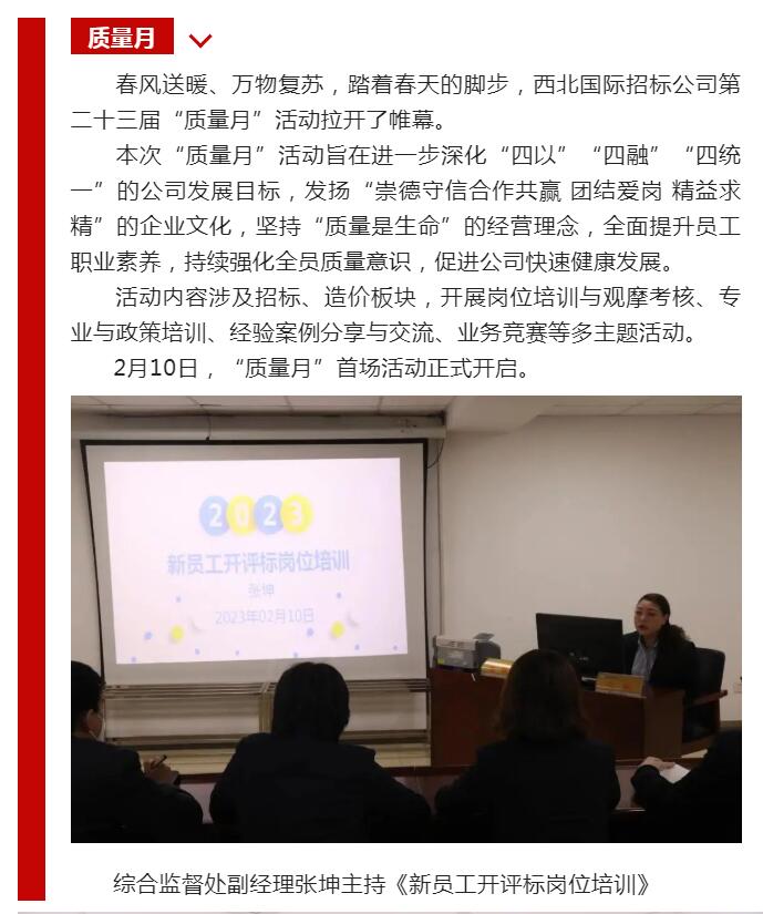 西北國際招標公司第二十三屆“”質(zhì)量月”培訓活動報道(第一周)