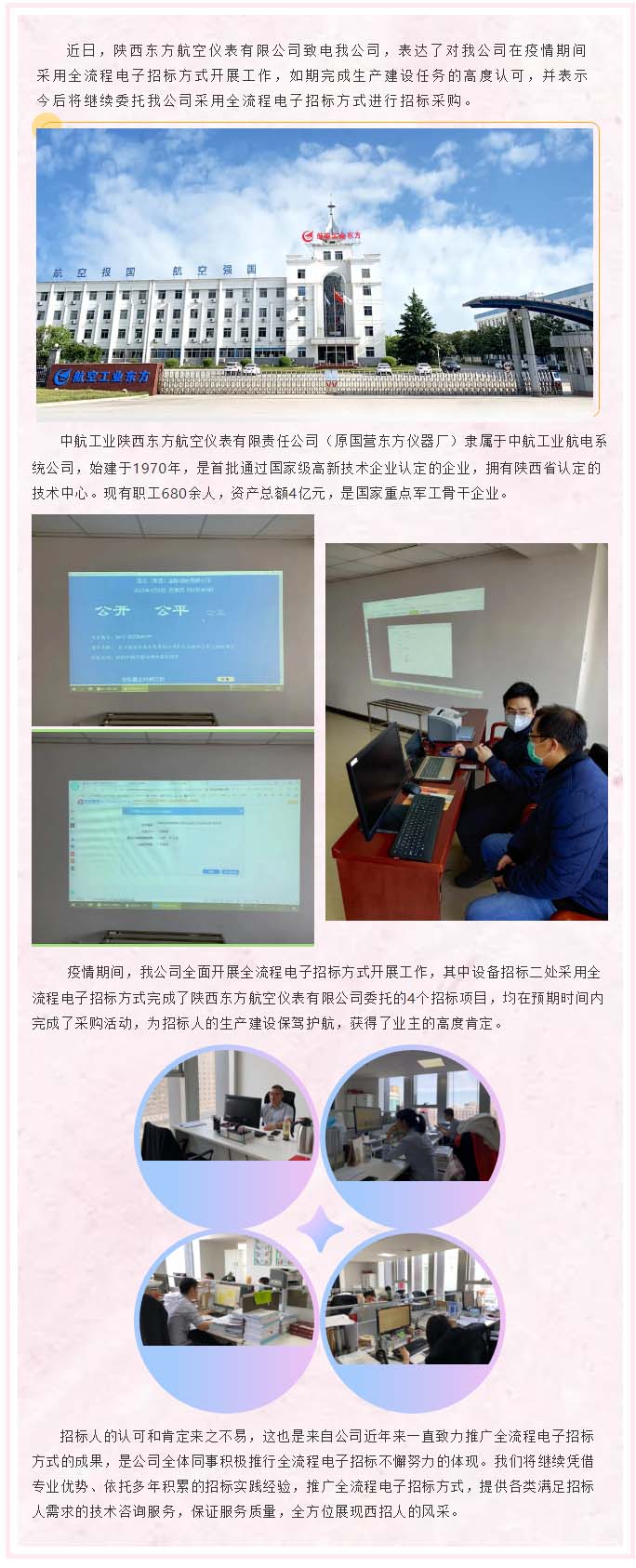 陜西東方航空儀表有限公司致電我公司,將繼續(xù)采用全流程電子招投標(biāo)方式進(jìn)行招標(biāo)采購