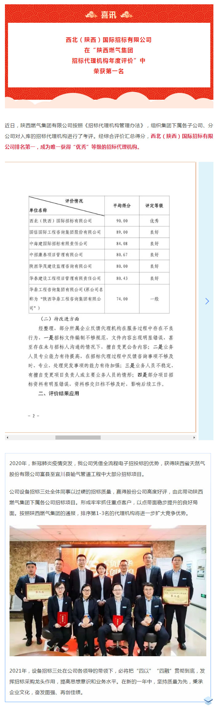 我公司在“陜西燃?xì)饧瘓F(tuán) 招標(biāo)代理機(jī)構(gòu)年度評價(jià)”中 榮獲第一名
